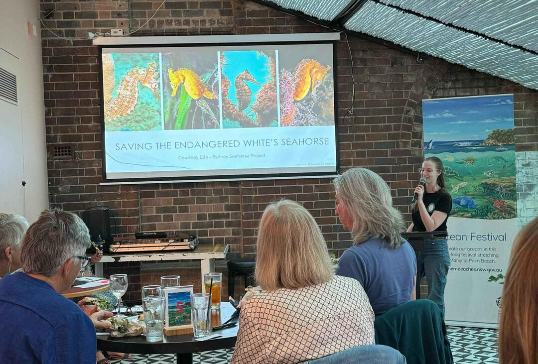 Courtney is a fully qualified Marine Biologist who recently gratuated with First Class Honours in Environmental Science with the UTS Fish Ecology lab, and is embarking on her PhD Candidature.She's currently heavily involved with the Sydney Seahorse Project and the Sydney Institute of Marine Science and is helping to develop methods to help rehabilitate wild populations of the native and endangered Hippocampus whitei (White's Seahorse). Her PhD canditature similarly focuses on the demography of these weird and wonderful fish, so we can better conserve them in the wild.She gives fun, approachable marine-science talks at schools and events all over South-East Australia. Get in touch if you'd like to book her for your event!